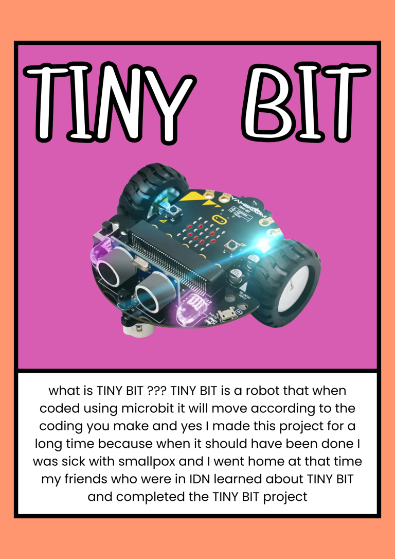 what is TINY BIT ??? TINY BIT is a robot that when coded using microbit it will move according to the coding you make and yes I made this project for a long time because when it should have been done I was sick with smallpox and I went home at that time my friends who were in IDN learned about TINY BIT and completed the TINY BIT project
